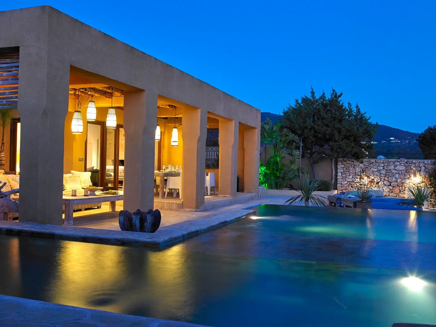 La Clemátide vereint traditionelle ibizenkische Architektur mit marokkanischen und balinesischen Einflüssen, während Es Vedrà von diesem Rückzugsort an der Südwestküste aus über Ihre Tage wacht.