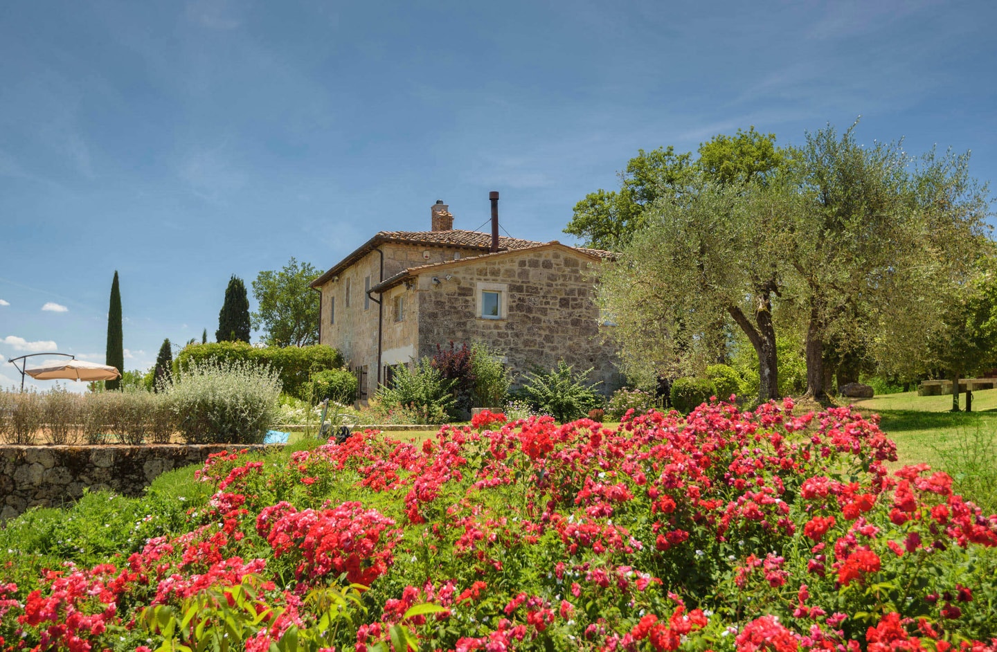Ein Zweibettzimmer im Erdgeschoss mit eigenem Bad eignet sich für diejenigen, die einen ebenerdigen Zugang bevorzugen. Im Obergeschoss ist die Aufteilung in zwei separate Bereiche unterteilt: In einem Flügel befinden sich ein Hauptschlafzimmer mit eigenem Bad sowie zwei Zweibettzimmer, die sich ein Badezimmer teilen, während der andere Flügel eine private Master-Suite mit Sitzecke umfasst, die über eine separate Treppe erreichbar ist. Der private Pool ist perfekt positioniert, um die langen toskanischen Sonnenuntergänge zu genießen.