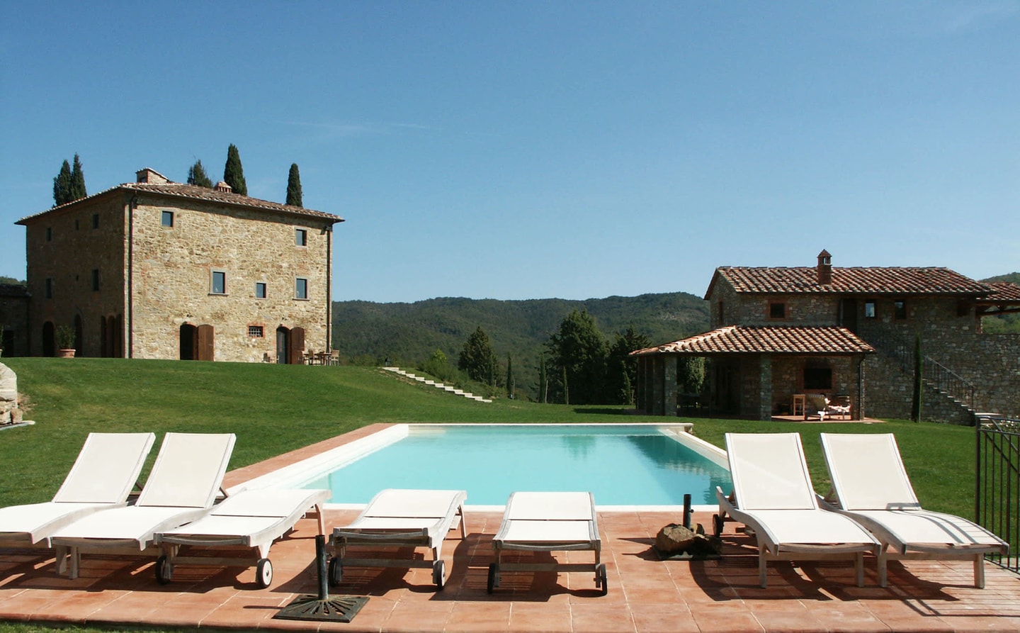 Ein Chianti-Anwesen aus dem 16. Jahrhundert mit 360-Grad-Blick über Weinberge und Olivenhaine. Sechs Schlafzimmer in zwei Flügeln bieten Privatsphäre, während der Innenhof zu langen toskanischen Abenden einlädt.