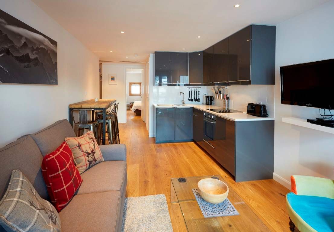 Diese Wohnung in Val d'Isère vereint das Beste aus beiden Welten: den Charakter der Altstadt mit einem durchdachten, modernisierten Interieur. Sie erstreckt sich über zwei Etagen eines kleinen Gebäudes und bietet Platz für acht Gäste in vier Schlafzimmern mit drei Badezimmern. Dank ihrer Lage befinden Sie sich direkt im historischen Herzen des Ferienortes, einem Ort, der nur selten zur Vermietung angeboten wird.