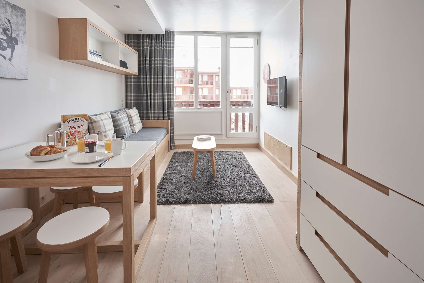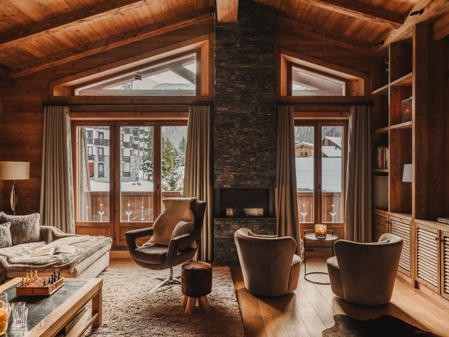 Das Wohnzimmer ist der perfekte Treffpunkt nach einem Tag auf der Piste. Mit seinem funktionierenden Kamin, dem Zugang zum Balkon und einer Mischung aus traditionellen und modernen Möbeln ist es der ideale Ort, um den Abend ausklingen zu lassen. Die Wohnung verfügt über WLAN, SMART-TV, Haartrockner und einen Skischrank. Dank der Lage in der Altstadt sind Restaurants, Geschäfte und die Lifte nur wenige Schritte entfernt, und Sie profitieren vom Charme des ursprünglichen Viertels von Val d'Isère im Gegensatz zu den neueren Siedlungen.