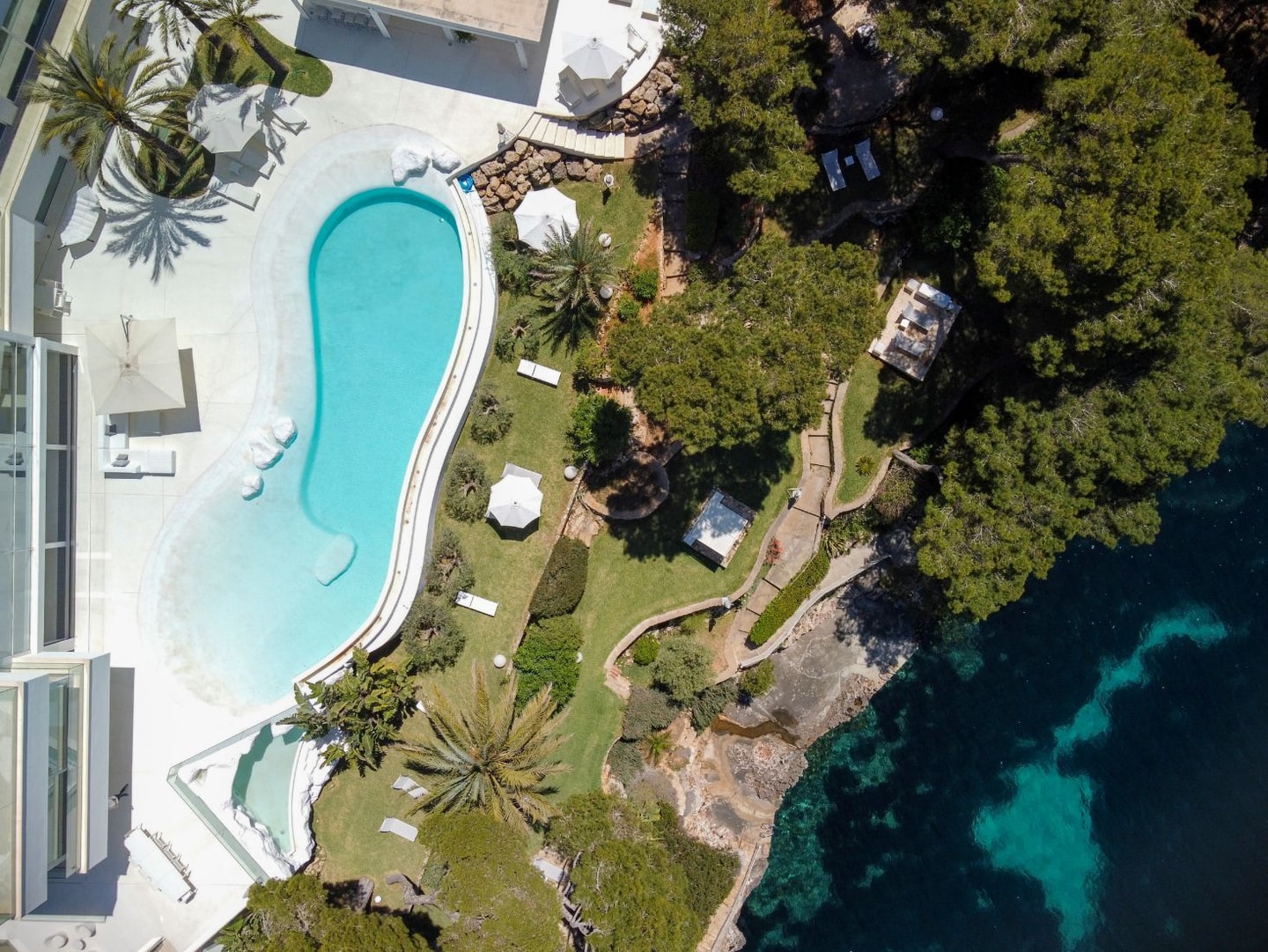 Die Villa Embarcadero empfängt Sie mit ihrer privilegierten Lage an der Südostküste Mallorcas, wo sich von jedem Aussichtspunkt aus ein endloser Blick auf das Mittelmeer bietet. Dieses Anwesen am Wasser verfügt über einen eigenen Anlegeplatz für Boote bis zu 25 Metern Länge, was es besonders attraktiv für diejenigen macht, die auf dem Seeweg anreisen. Der 4.200 Quadratmeter große Garten umgibt die Villa und schafft eine private Welt mit gepflegten Rasenflächen und altem Baumbestand.