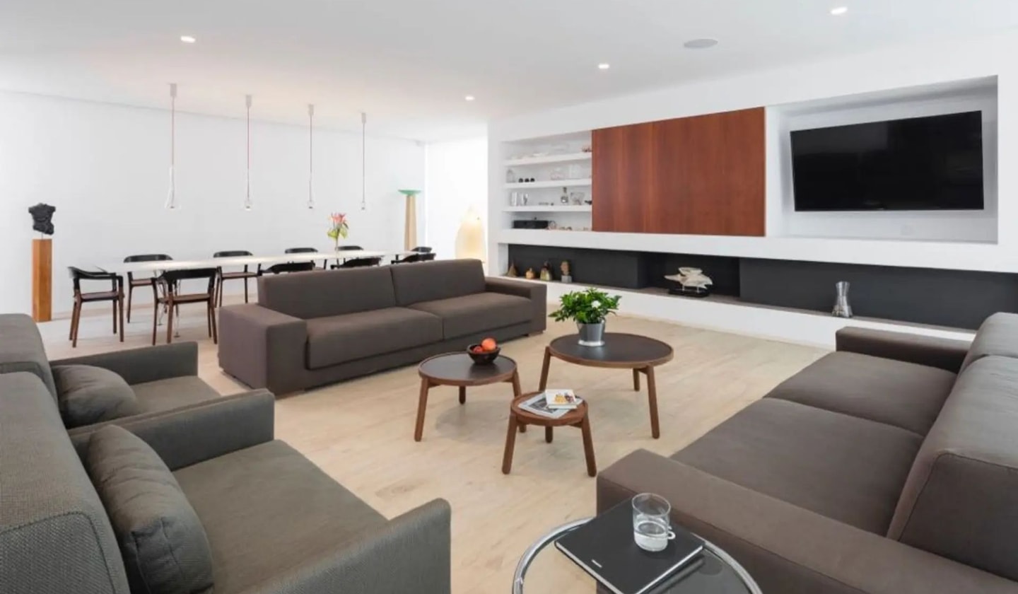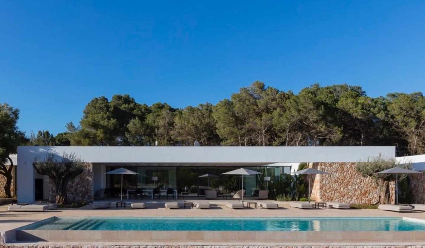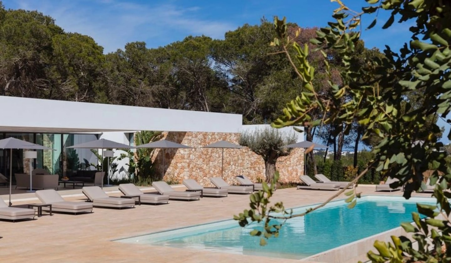 Between Santa Eulària and Santa Gertrudis, this modern villa offers sweeping views across the hills to the bay. Seven bedrooms, each with its own bathroom, provide space and privacy for everyone.