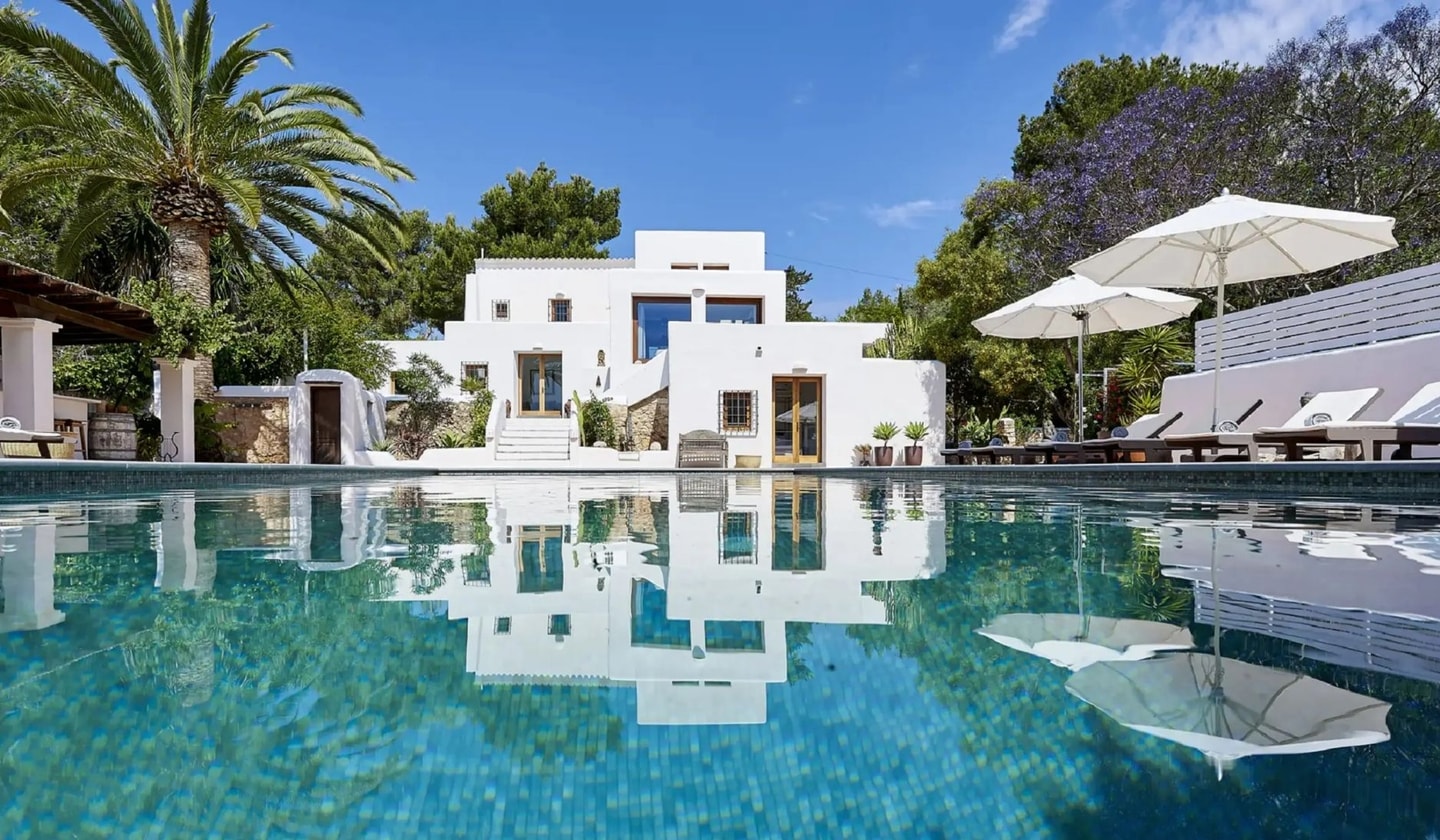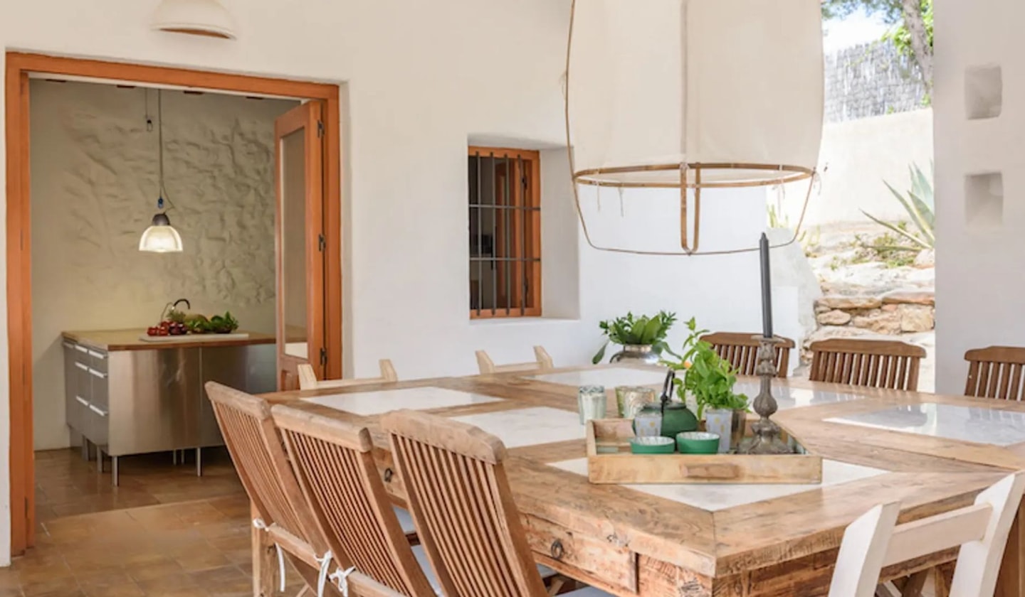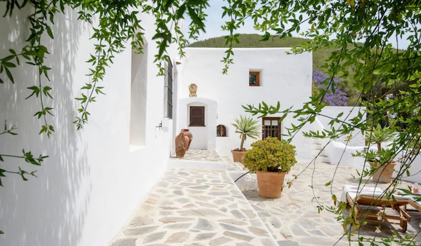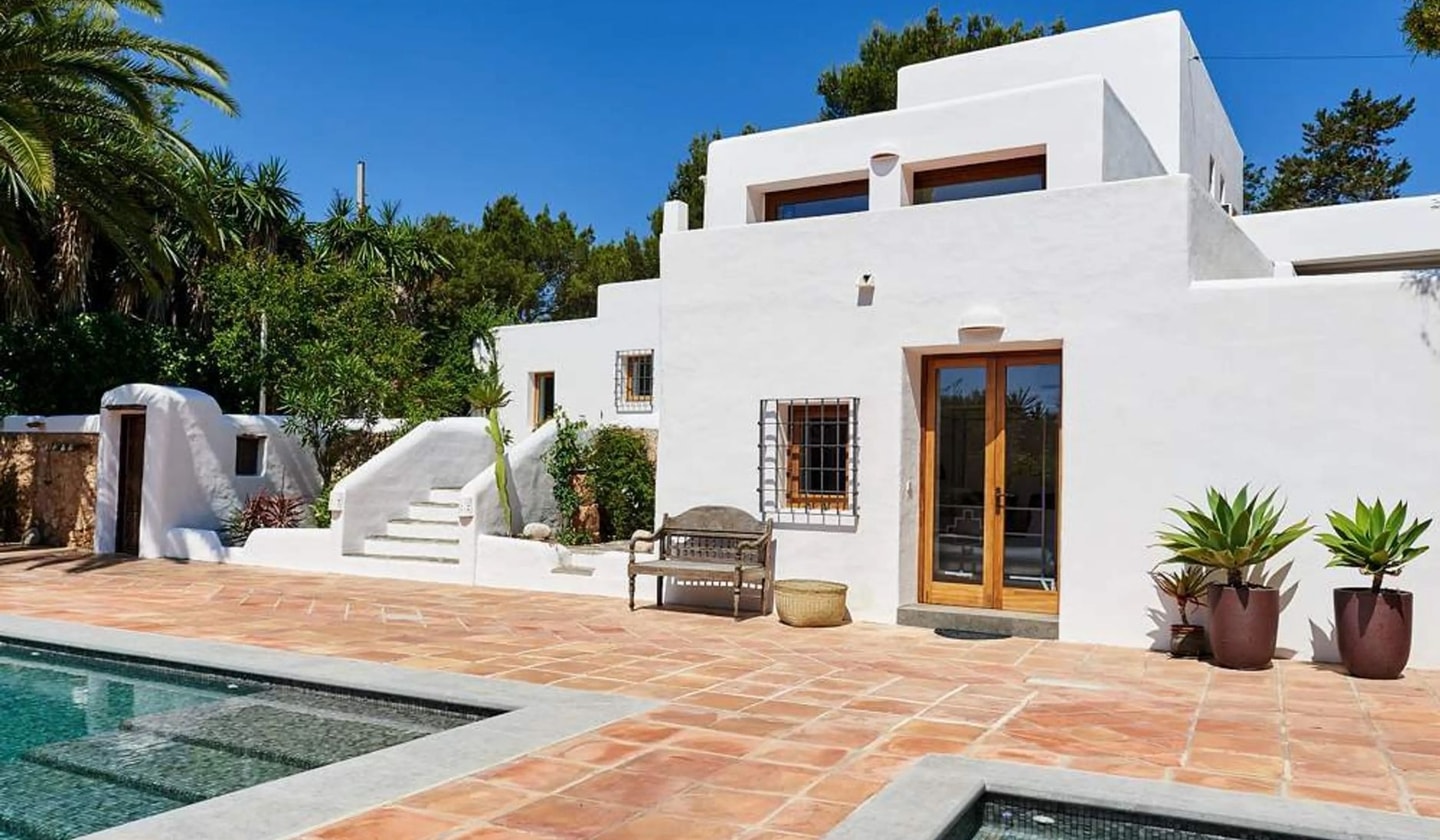 A restored finca near Santa Eulalia with spacious outdoor terraces, a large pool and thoughtfully designed interiors. Views stretch to Puig d'en Missa and the sea.