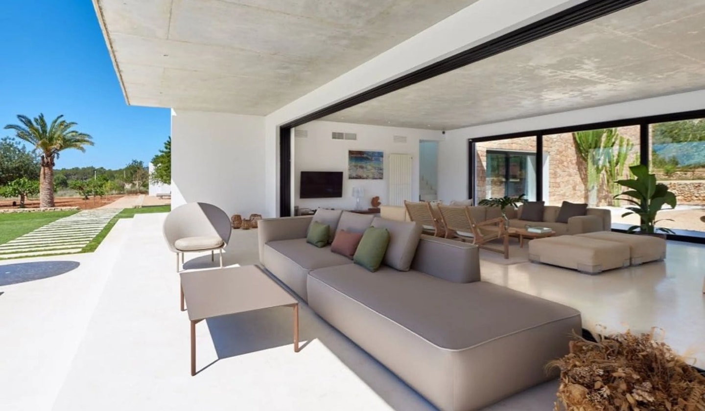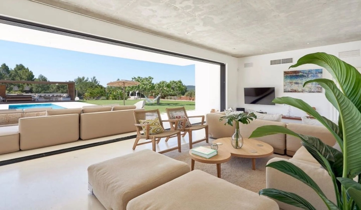 Eight bedrooms spread across 17,700 square metres of private land, just outside San Juan. This modern villa sits on a working farm, complete with fruit orchards, centenary olive trees and a restored water wheel that hints at the property's agricultural past. The northern beaches of Benirràs and its famous sunsets are fifteen minutes away by car.