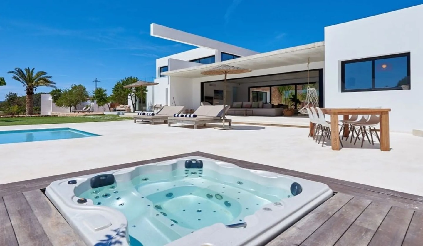 A separate guest house adds two more bedrooms with their own lounge and outdoor bath. Recent additions include a children's play forest with climbing routes and zip line, plus a dedicated yoga space. The fourteen-metre pool sits alongside an outdoor jacuzzi, while the grounds feature Mediterranean gardens, a horse stable and barbecue area. Heating and air conditioning throughout, with six megabyte internet keeping you connected.