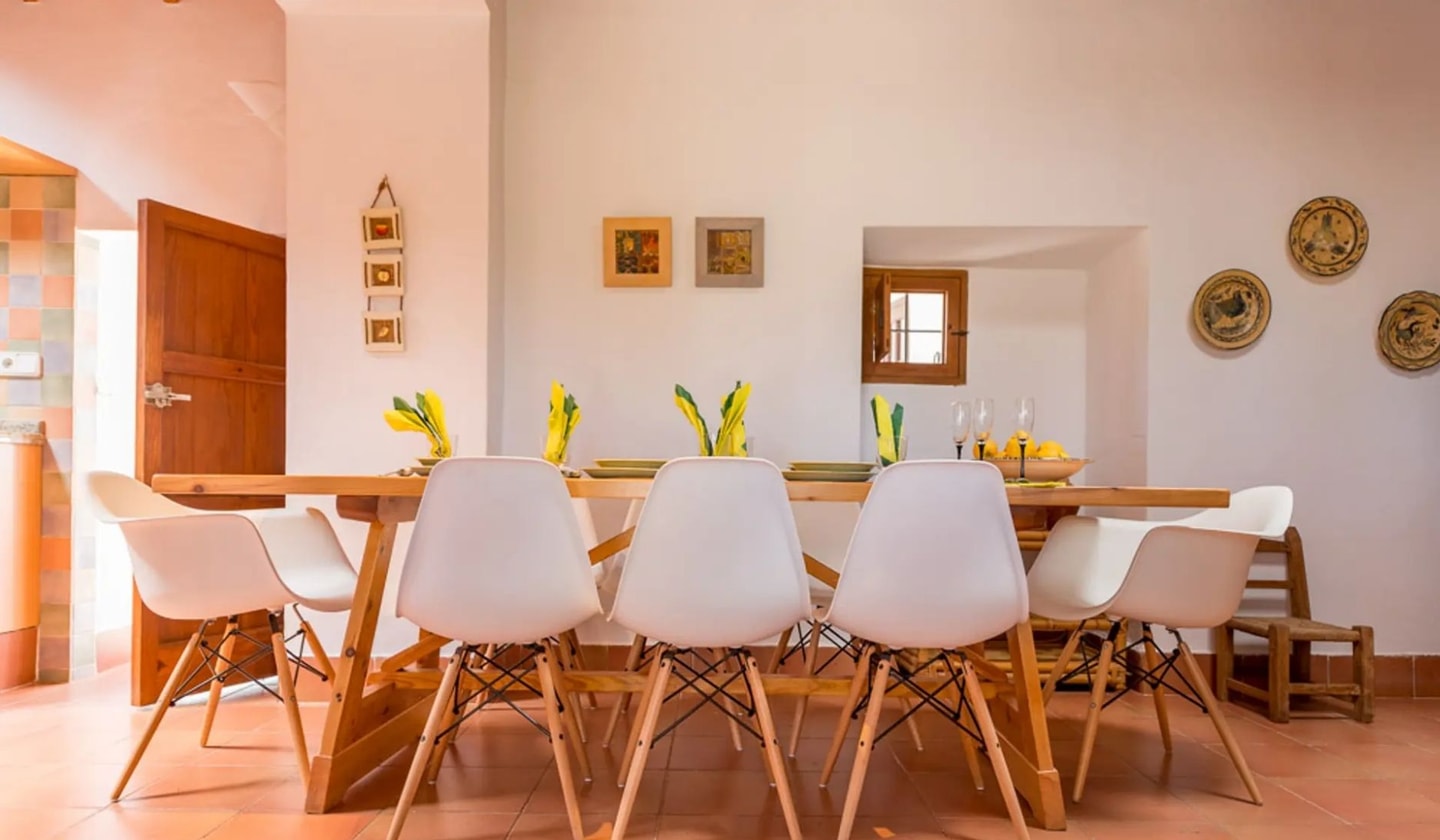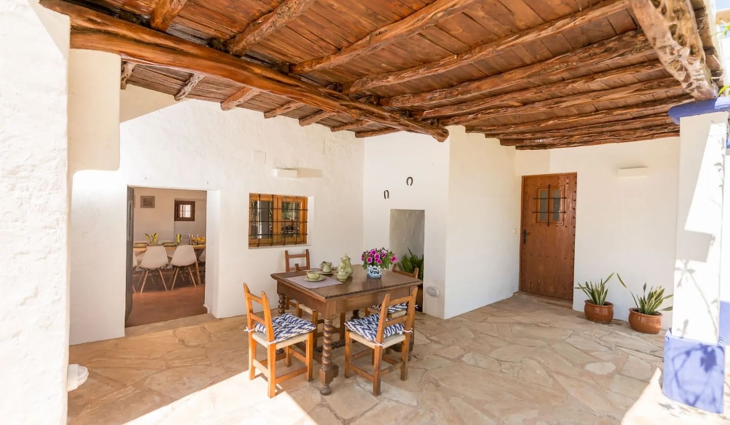Your days here balance countryside tranquility with easy access to the island's attractions. Niu Blau beach lies five minutes by car, while Ibiza Town and the airport are 25 kilometres south. Morning tennis, paddle or squash at Santa Eulària's sports facilities comes complimentary with your stay. Weekly linen changes and Saturday garden maintenance ensure everything runs smoothly. Whether exploring nearby markets, heading to the coast, or simply enjoying the shaded terrace, this finca provides an authentic base for discovering northern Ibiza at your own pace.