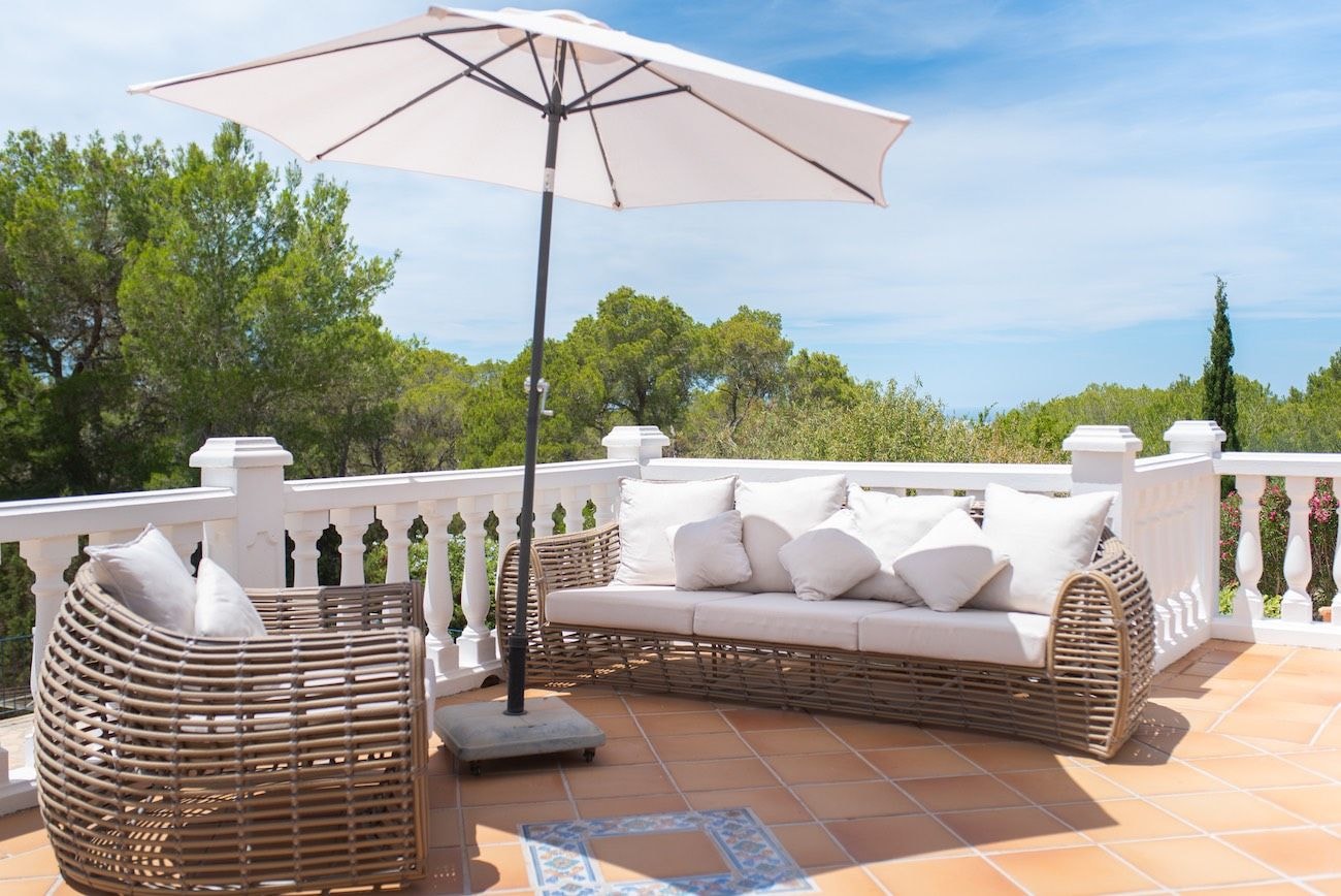 A bohemian hideaway among Benimussa's pine forests, where four bedrooms spread across two separate floors offer both togetherness and privacy. Rooftop sunsets and poolside days define the rhythm here.