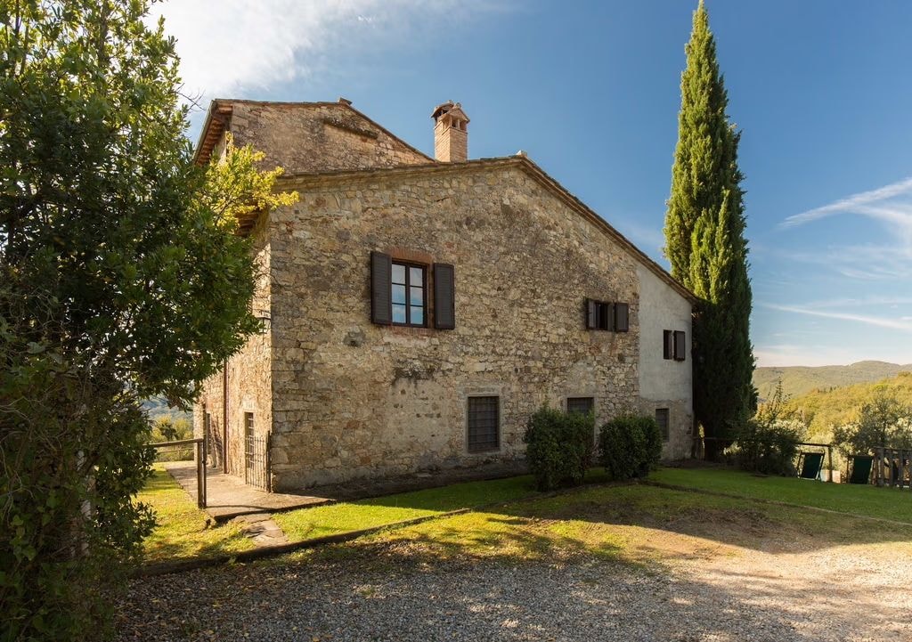 Casavecchia rests within the historic Castello di Volpaia estate, where vines and olive trees have shaped the landscape since 1172. The villa looks out across this celebrated Chianti Classico territory, whose 2015 Riserva earned third place in Wine Spectator's global rankings in 2018. From here, the medieval hamlet of Volpaia sits just 1.3 kilometres away via a footpath through the vineyards, or 2.5 kilometres by car.