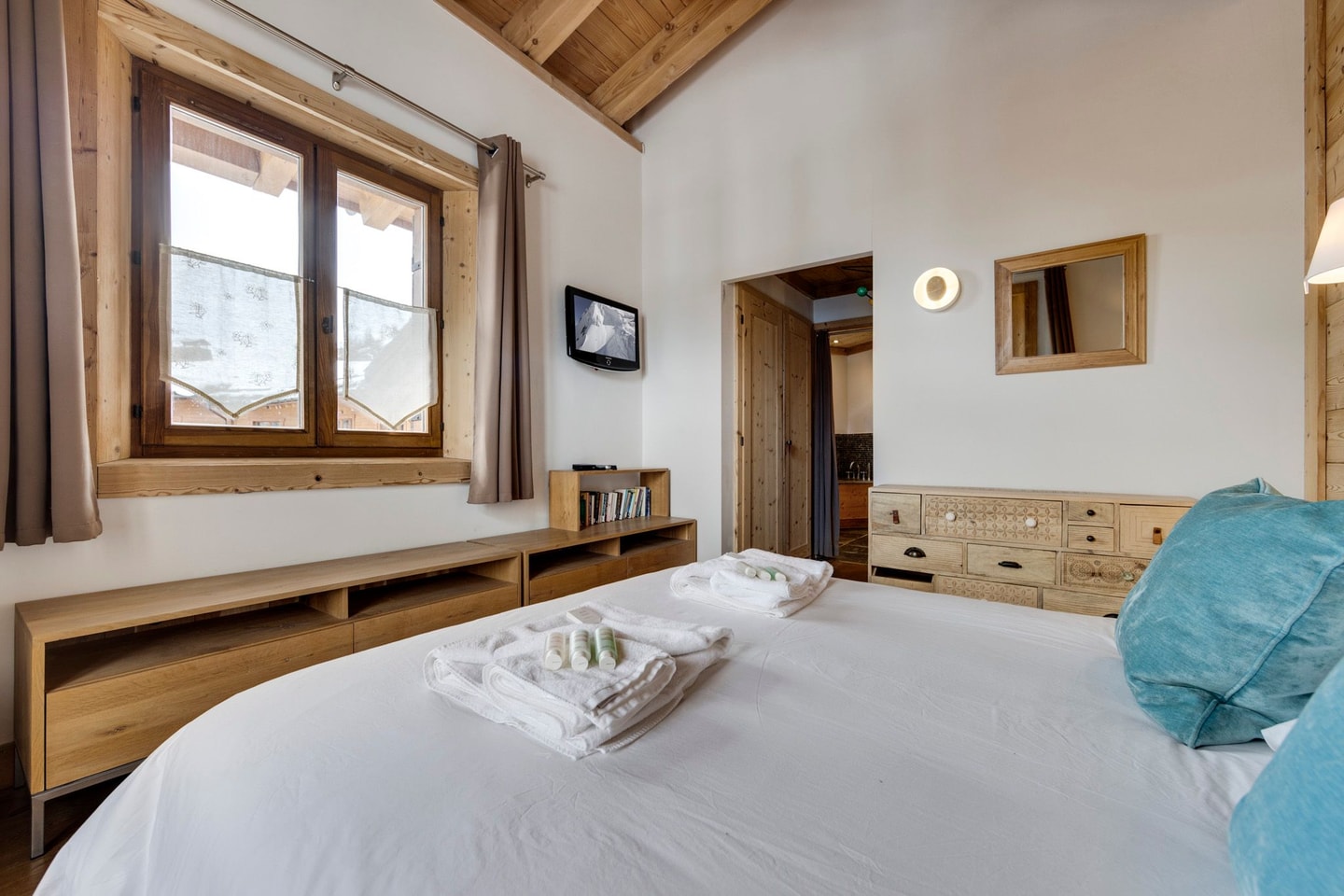 High above Val d’Isère’s lively centre, Les Choucas Loft spans the top two floors of its building, offering vaulted ceilings and a modern wood-burning fireplace that sets it apart from its neighbours. The location strikes a rare balance: you're steps from shops and restaurants, yet the building sits far enough back from the high street to ensure peaceful nights.