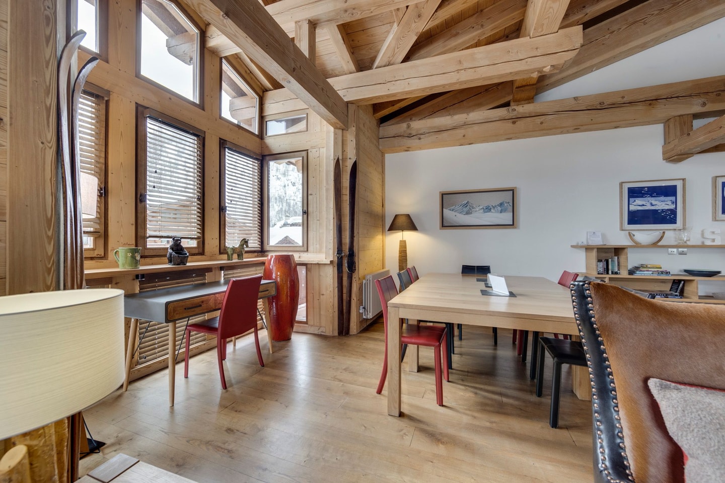 Mornings often begin with a coffee on the balcony overlooking the Solaise mountain. The pistes are within easy walking distance uphill, with underground parking and a ski locker with boot warmers waiting on return. After days on the slopes, relax in this penthouse space with the wood fire burning as your evenings begin.