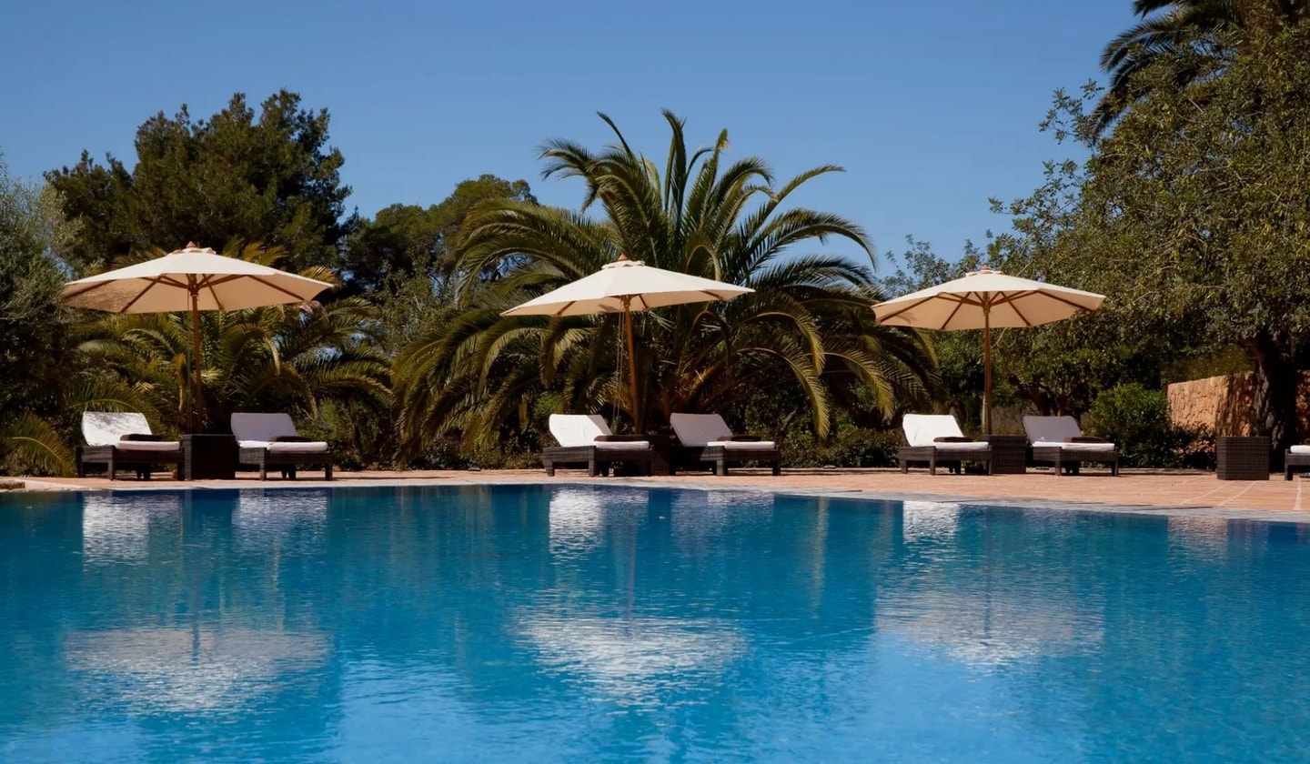 Between Santa Eulària and Santa Gertrudis, this eight-bedroom villa brings together Tuscan-inspired architecture with Ibiza's countryside charm. Views stretch across rolling hills to Santa Eulària bay.