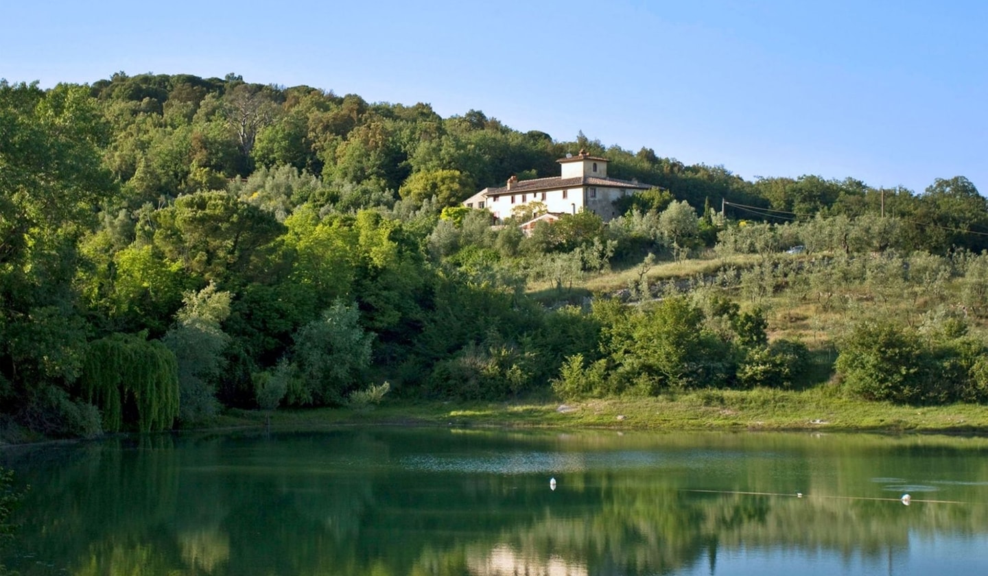 Six bedrooms spread across a Tuscan hillside estate, where Florence's artistic treasures lie just 15km away. Your private saltwater pool commands views across the hills to a tranquil lake below.