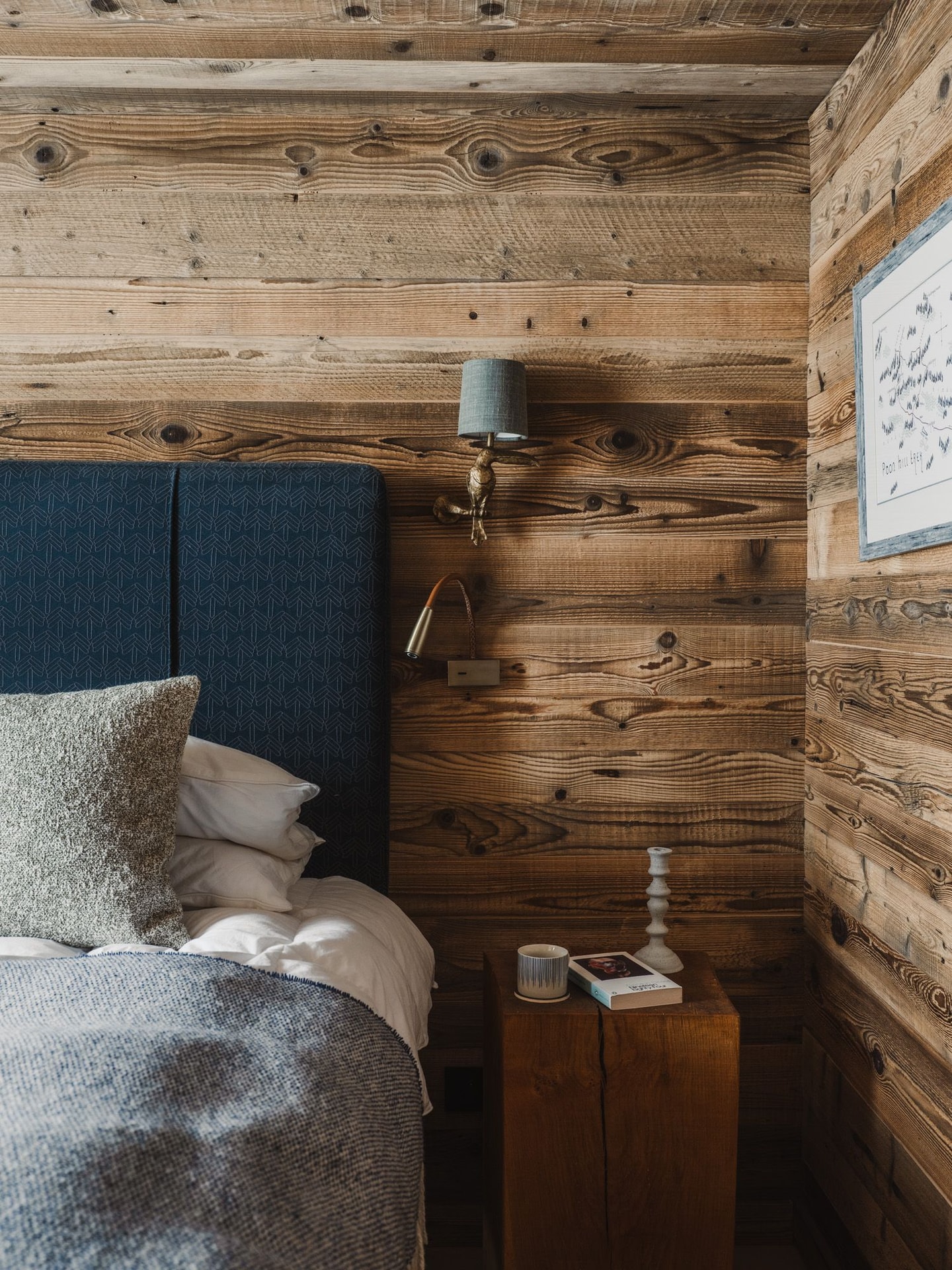 - King bed tucked perfectly into the wall space