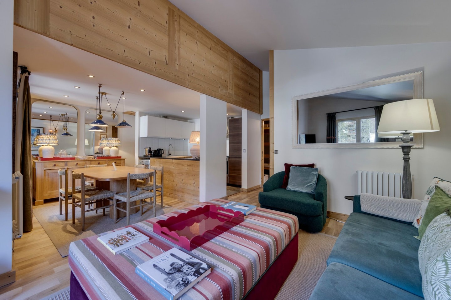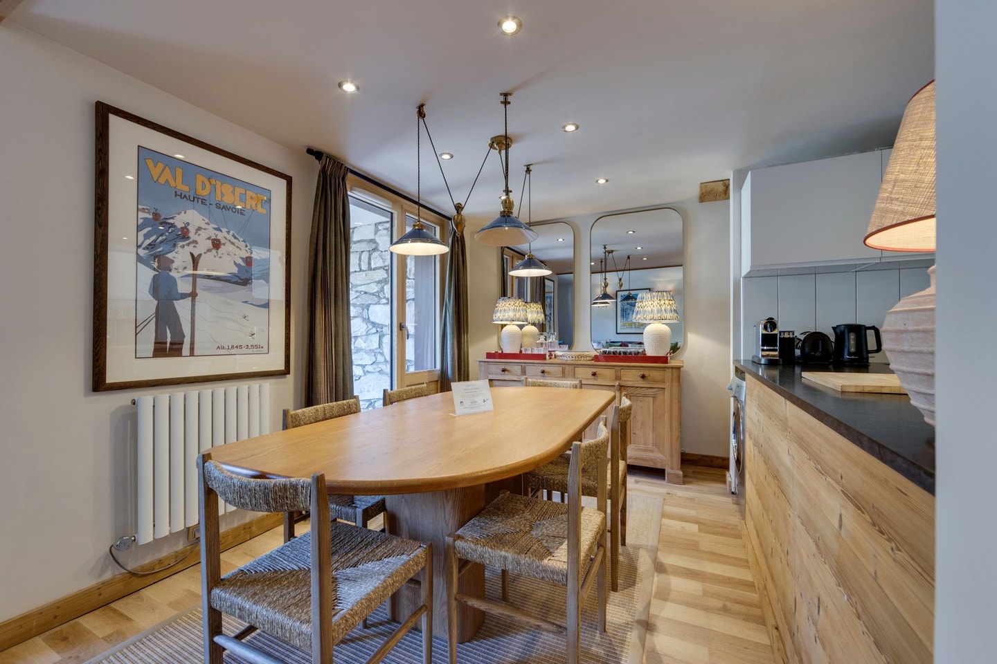 A second-floor apartment, located on the main street of Val d'Isère has been recently renovated, designed to be stylish and cosy for winter stays. Just a five minute stroll from the town centre, while the regular resort bus service stopping right outside connects you easily to the slopes. This thoughtfully designed apartment combines style with everyday comforts for mountain living.