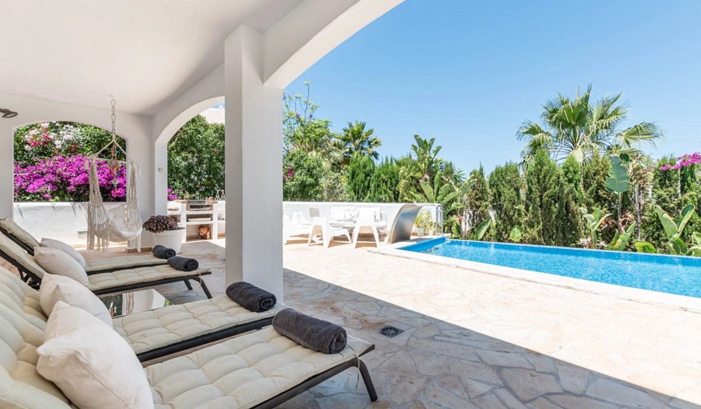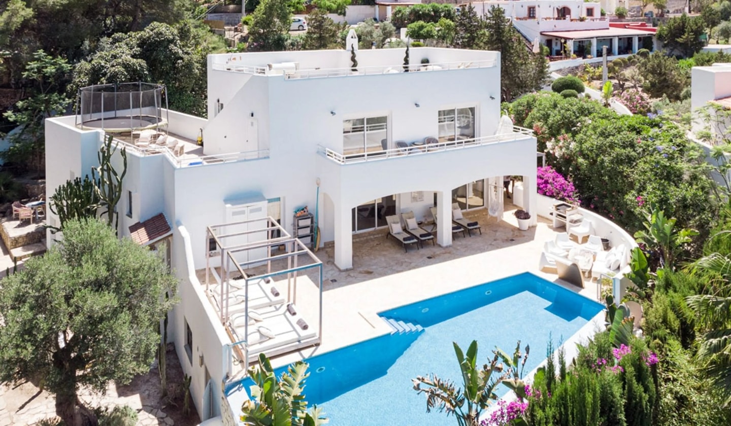 A stylish villa tucked into the foothills above Santa Eulalia, where six bedrooms across two buildings offer space for everyone. Interior designer touches meet infinity pool views.