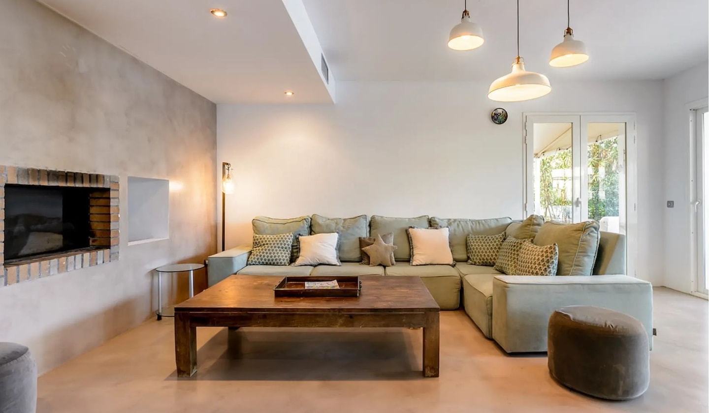From here, Ibiza Town lies just fifteen minutes by car, with the airport twenty minutes away. Santa Eulalia itself offers a gentler pace than some of the island's busier spots, with good restaurants and local markets within easy reach. Mornings might start with a walk to the beach or a swim in the pool, while evenings often find guests on the terrace, watching the light change over the surrounding hills as dinner preparations begin in the well-stocked kitchen.