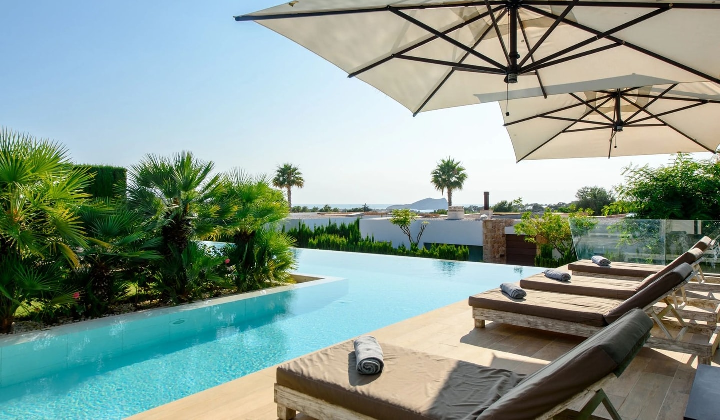 Mornings might start with coffee on the lawn before wandering down to Cala Conta's turquoise waters. The nearby beaches of Cala Tarida and Cala Bassa, home to Cotton Beach Club and other waterfront venues, lie within a short drive. From your terrace, the Mediterranean stretches westward, promising those famous Ibizan sunsets that paint the sky each evening. Please note that construction work may occur in the area outside peak season.
