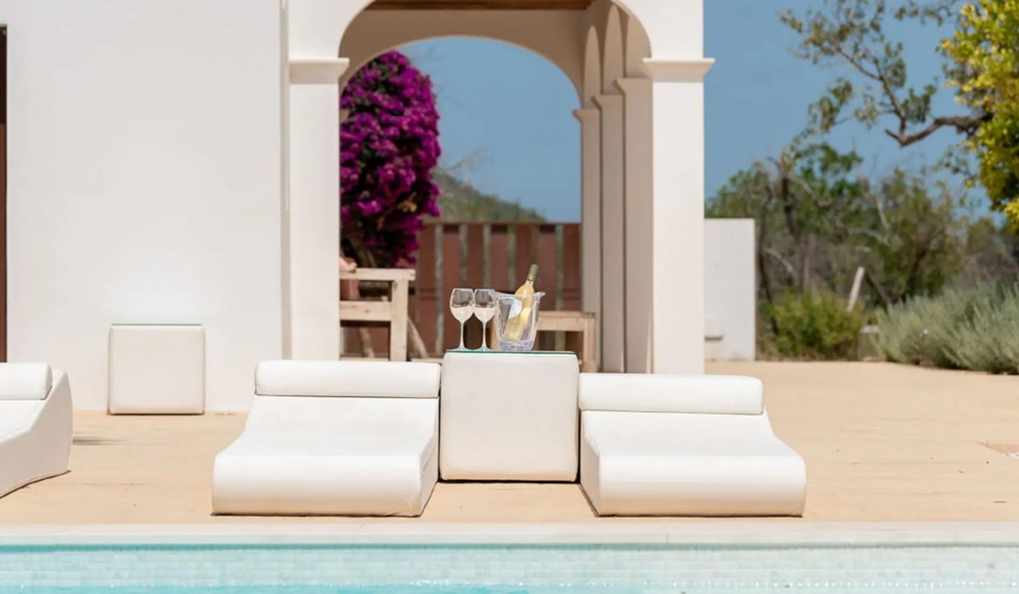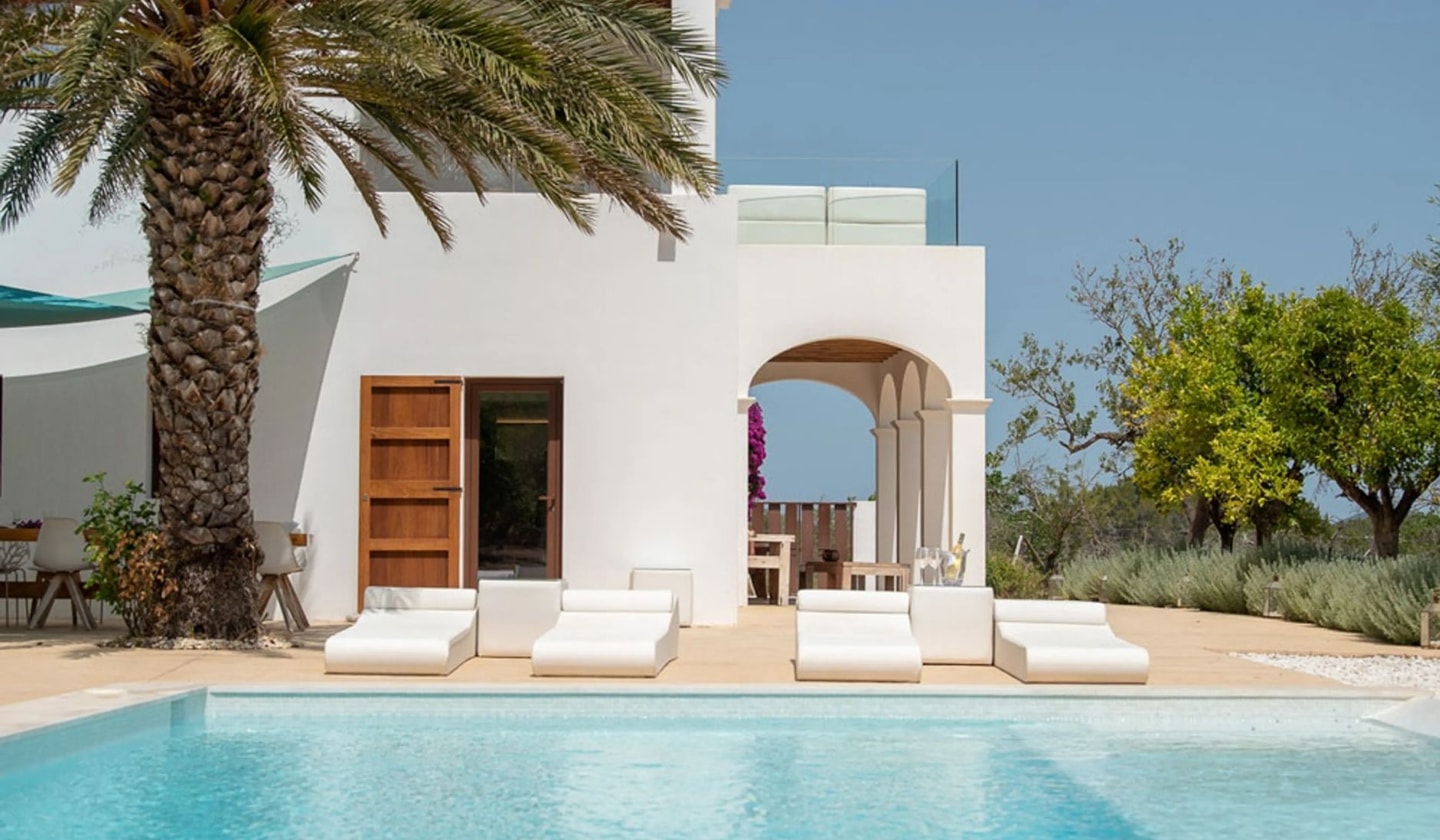 Six bedrooms and endless terraces make this family-friendly villa a natural choice for those seeking space and privacy. Just around the corner from San Lorenzo village, with Benirràs beach within easy reach.