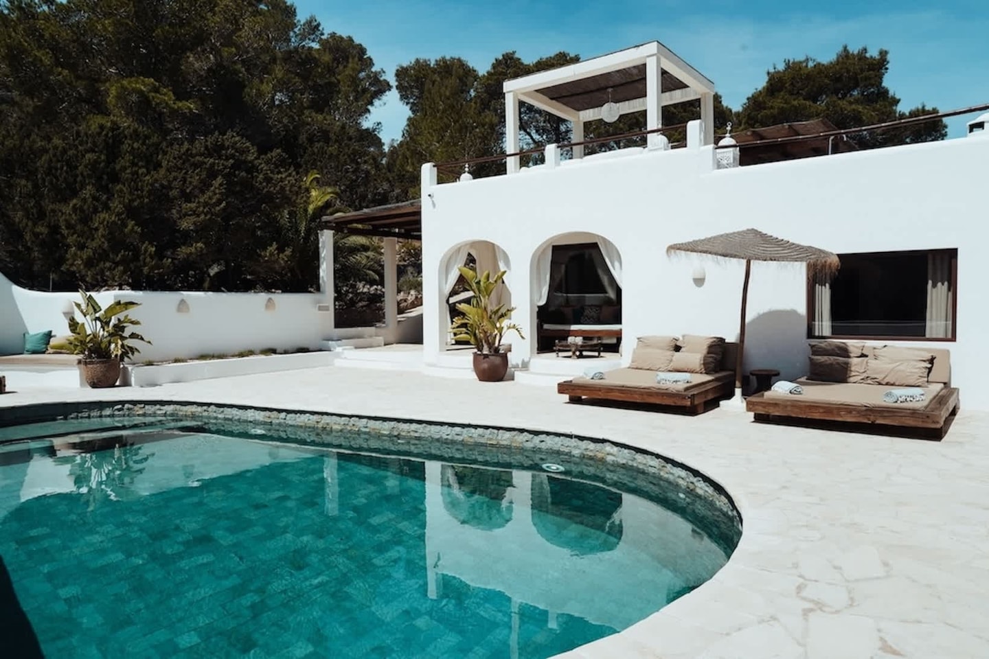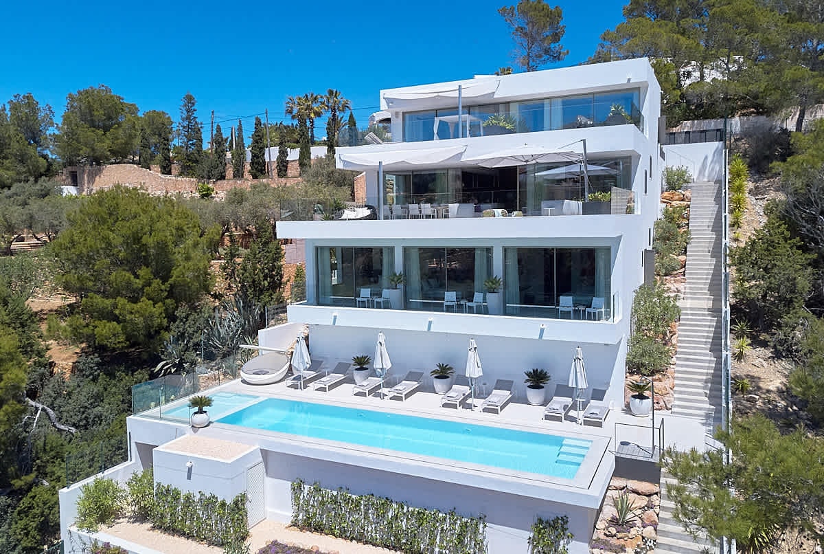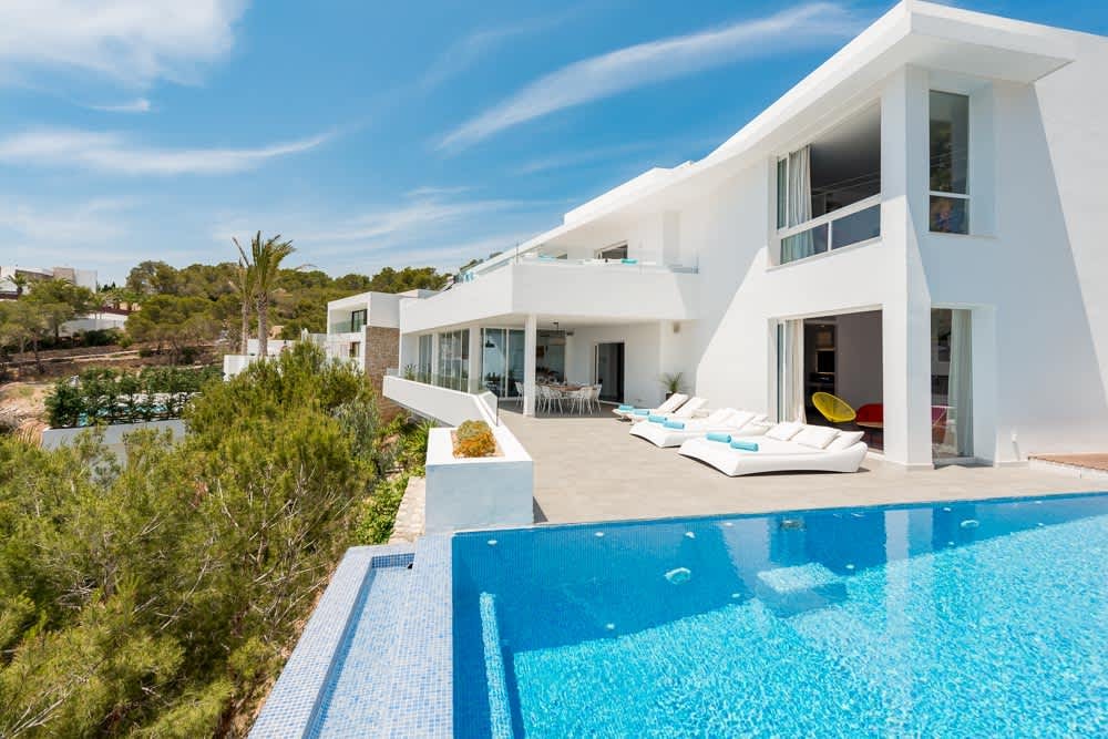 - Infinity pool views across Ibiza's hills and sea