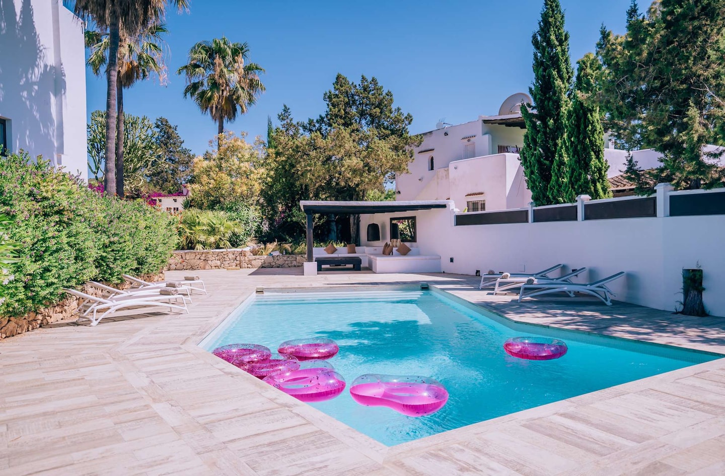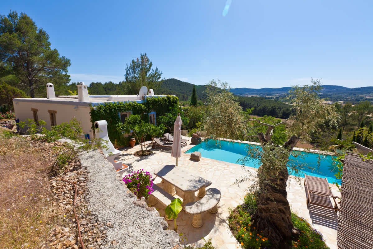 - Floor-to-ceiling windows frame Ibiza's landscape