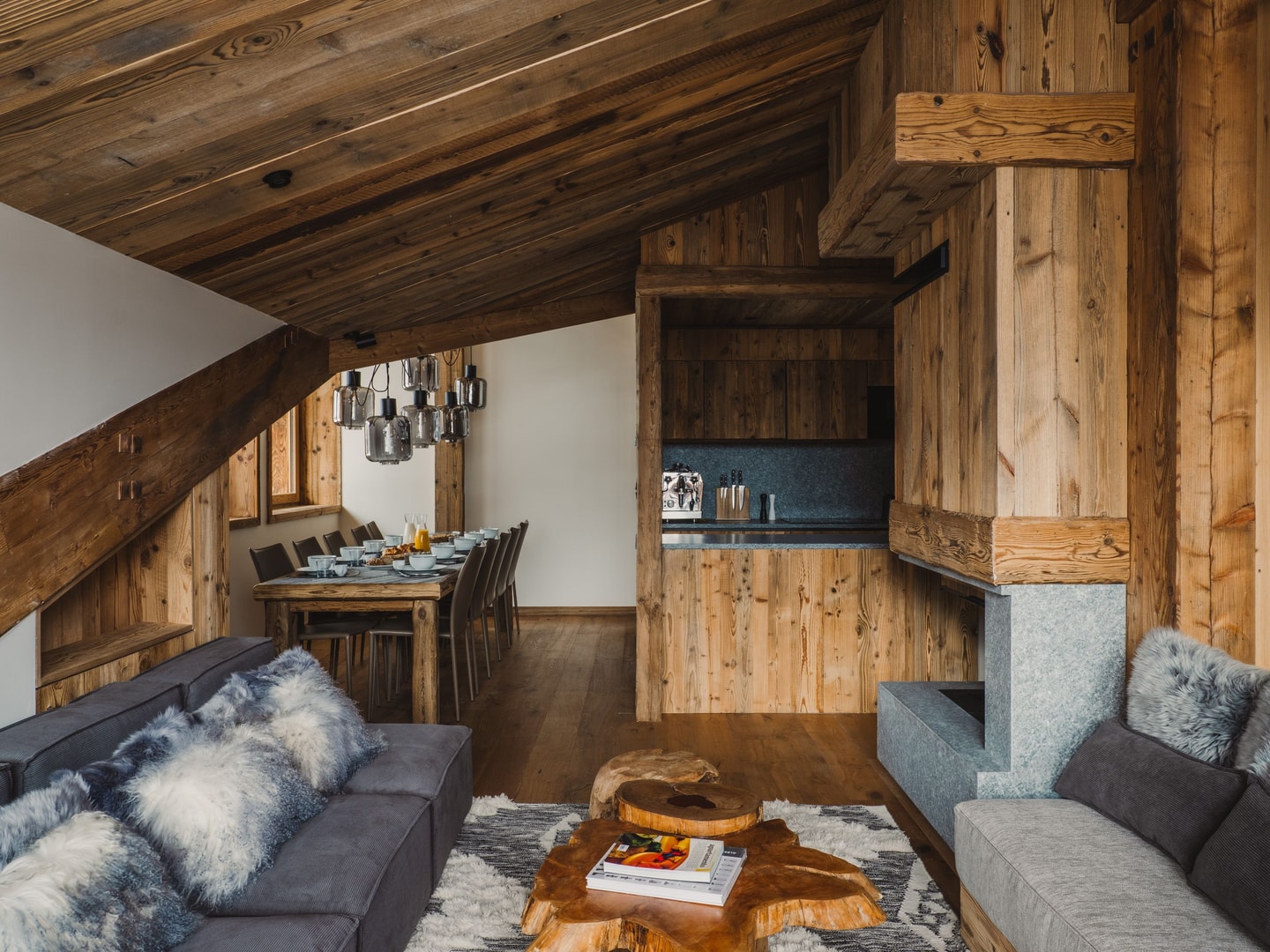 Kom binnen en ontdek een woonruimte waar natuurlijk licht door de grote ramen naar binnen stroomt en de open haard en de comfortabele zitjes verlicht. De open indeling stimuleert de interactie tussen keuken en woonkamer en is overal met hoogwaardige materialen afgewerkt. Elk van de vijf slaapkamers heeft zijn eigen stijl, van de speelse kamer met stapelbed, ideaal voor jongere gasten, tot de rustige tweepersoonskamers met hun serene alpine stijl.