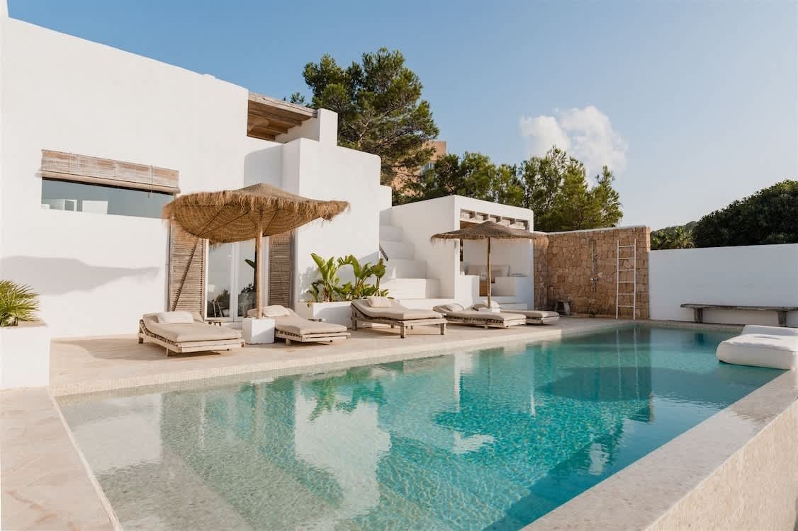 Het strand van Cala Vadella ligt voor de deur en is met zijn rustige water en restaurants aan het water ideaal voor gezinnen. De beschermde baai is perfect om te snorkelen, terwijl verschillende andere stranden langs de kust gemakkelijk te bereiken zijn. Ibiza-stad ligt op 25 minuten rijden met de auto, voor als je zin hebt om het historische centrum van het eiland te verkennen. De dagen hier brengen we door tussen het zwembad, het strand en het terras, met uitzicht op de zonsondergang over het water als perfecte afsluiting van elke avond.