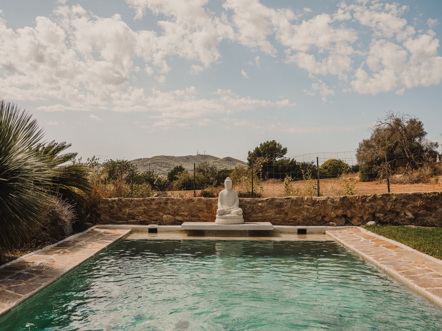 De dagen hier zijn een mix van rustige ochtenden bij het zwembad en het verkennen van het oosten van Ibiza. De beroemde hippiemarkt Las Dalias ligt op minder dan tien minuten afstand, perfect om lokale ambachten te bekijken en te blijven voor de avondfestiviteiten. De stranden van Cala Llenya en Cala Nova bieden ongerept zand en helder water in de buurt. Als de avond nadert, zorgt de westelijke hemel voor een prachtig schouwspel, met uitzicht op de zonsondergang over de open velden vanaf je eigen terras.