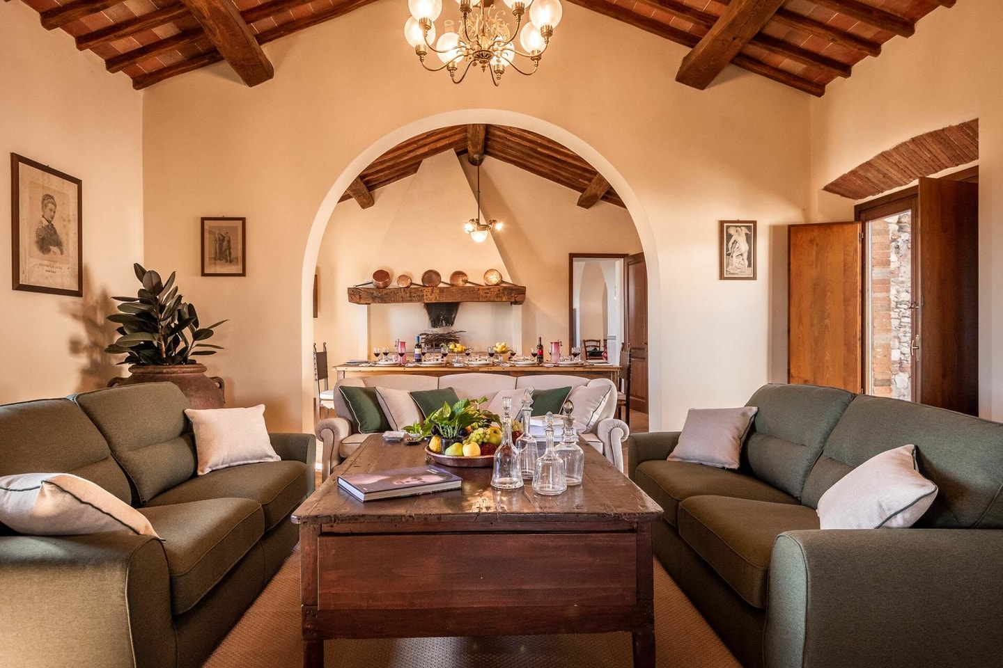 Het omheinde privézwembad kijkt uit over de glooiende heuvels van Toscane, waar het landschap zich uitstrekt tot aan de wijngaarden in de verte. Dit is het gebied van Chianti Classico, en het nabijgelegen Castello di Volpaia produceert wijnen die de aandacht van internationale critici hebben getrokken. Er kunnen gratis wijnproeverijen worden geregeld voor gasten, die inzicht geven in de veelgeprezen wijnen en wijnbereidingstradities van het landgoed.