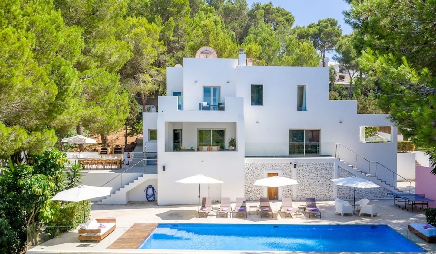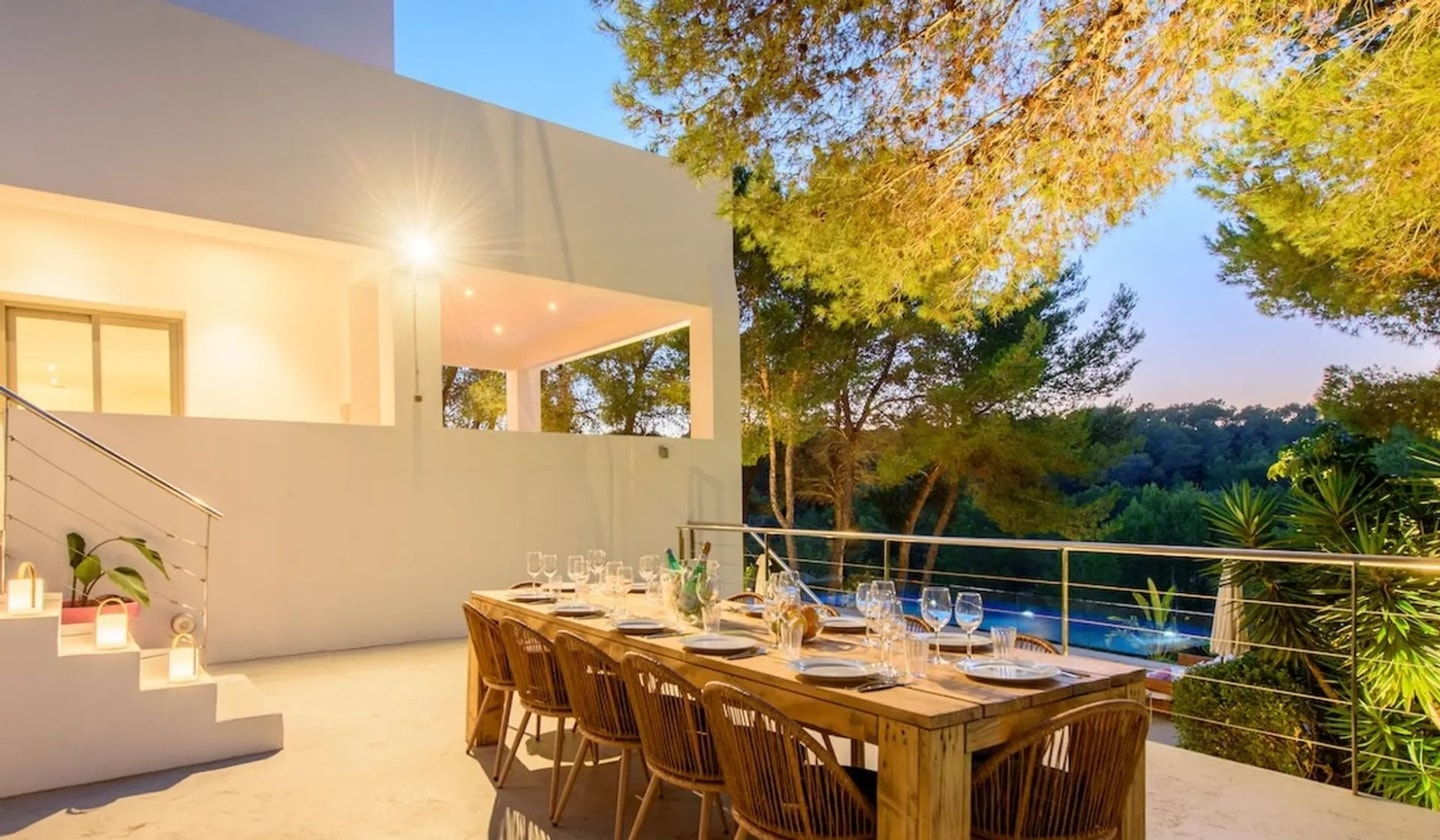 Door de locatie zijn de mooiste stranden van het westen van Ibiza makkelijk te bereiken. Cala Tarida, Cala Conta en Cala Bassa liggen allemaal in de buurt en bieden allemaal helder water en restaurants aan het strand. San Antonio biedt lokale voorzieningen op slechts enkele minuten afstand, terwijl Ibiza-stad 17,5 kilometer naar het oosten ligt voor wie op zoek is naar nachtleven of dineren in de jachthaven. De dagen hier bestaan uit luieren aan het zwembad op de aanwezige ligbedden, uitstapjes naar het strand en lange diners aan de buitentafel naast de dubbele barbecue terwijl de zon ondergaat boven de baai.